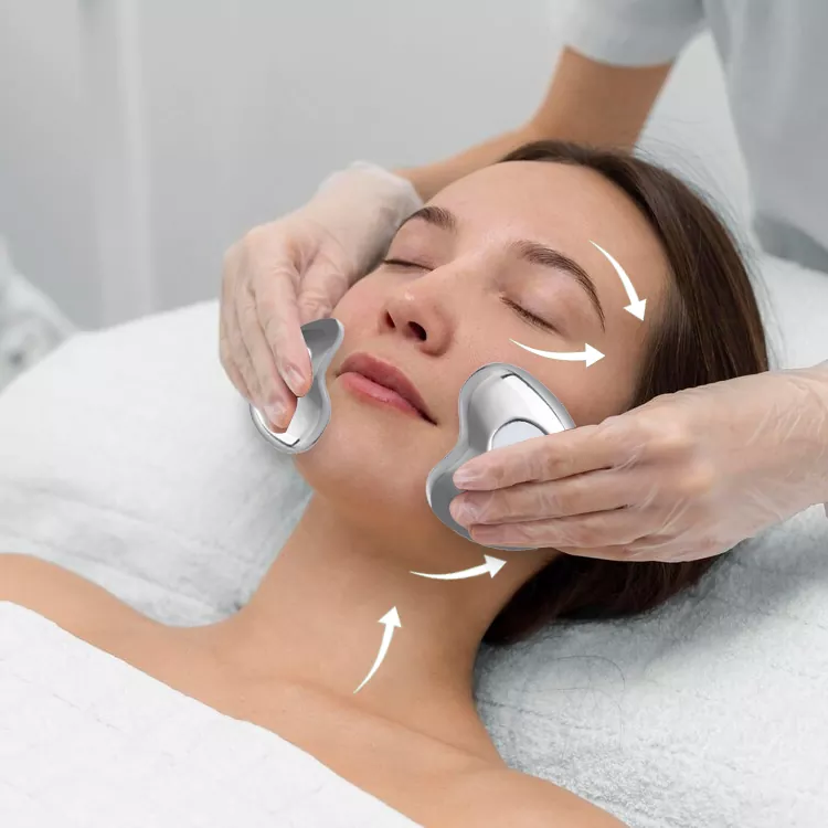 با یخ و گرما ، نرم ، از نزدیک پوست صورت متناسب است |