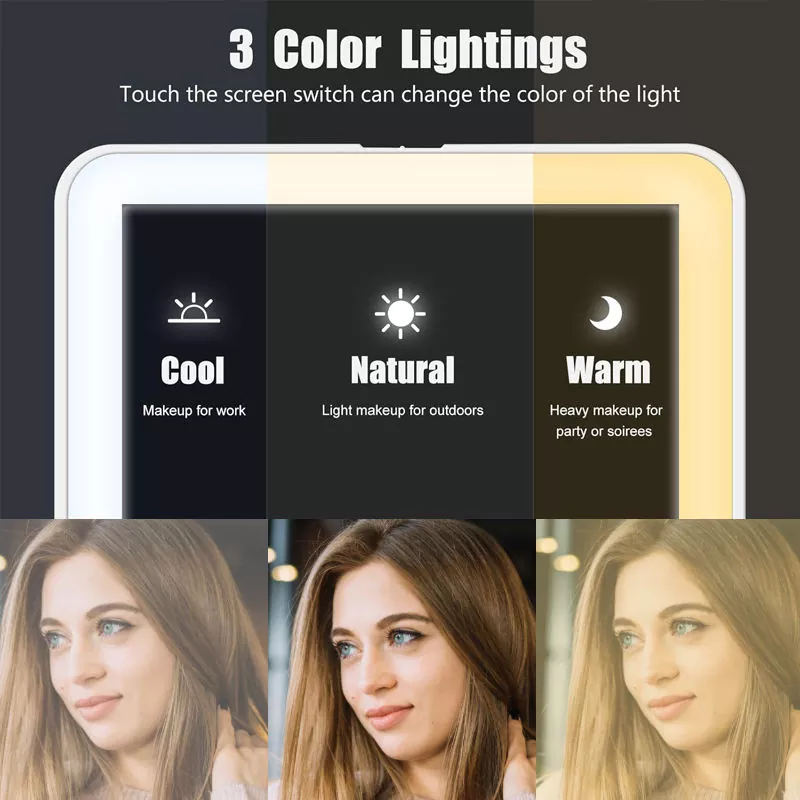 این آینه میکاپ ال ای دی رومیزی دارای سه حالت نور قابل تنظیم (خنک، طبیعی، گرم) است که متناسب با تمام سناریوهای آرایش است. نور خنک برای آرایش محل کار، نور طبیعی برای ظاهر در فضای باز و نور گرم برای رویدادهای عصر ایده آل است. حلقه LED نرم و بدون سوسو، رندر رنگی واقعی را ارائه می دهد و از اعمال آرایش دقیق حتی در محیط های کم نور اطمینان می دهد.