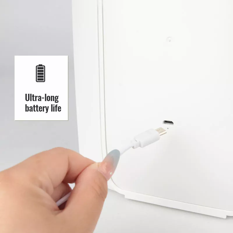 این آینه با یک باتری قابل شارژ داخلی، از شارژ سریع USB-C پشتیبانی می کند و عمر باتری فوق العاده طولانی را برای استفاده طولانی ارائه می دهد. بدون نیاز به شارژ مجدد مکرر، آن را برای استفاده روزانه در منزل و سفرهای طولانی قابل اعتماد می کند. طراحی LED کم مصرف نیز مصرف برق را کاهش می دهد.